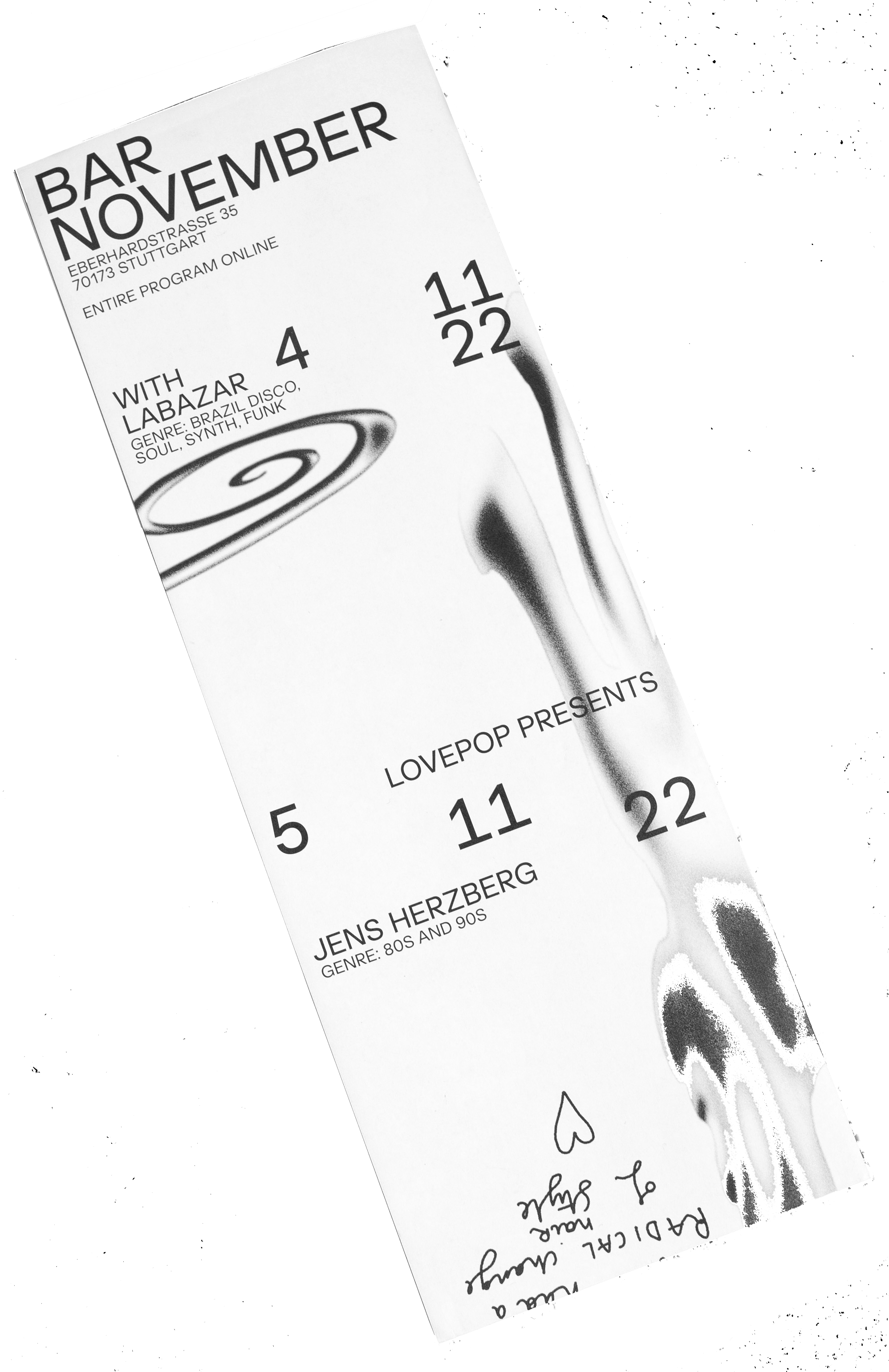 Visual concept for White Noise Stuttgart in collaboration with Mike Razniewski and various monthly collaborators including Pia Graf, Sophie Koko, Chau Luong, Verena Mack, Y-Thanh Võ, Eleonora Capodiferro, Studio Cabrio, and many more